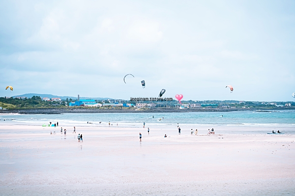 제주말들이 뛰어 놀 수 있을 정도로 정말 넓은 해수욕장입니다. 여름이 되면 정말 많은 피서객들이 찾아오는 해수욕장이기도 합니다.